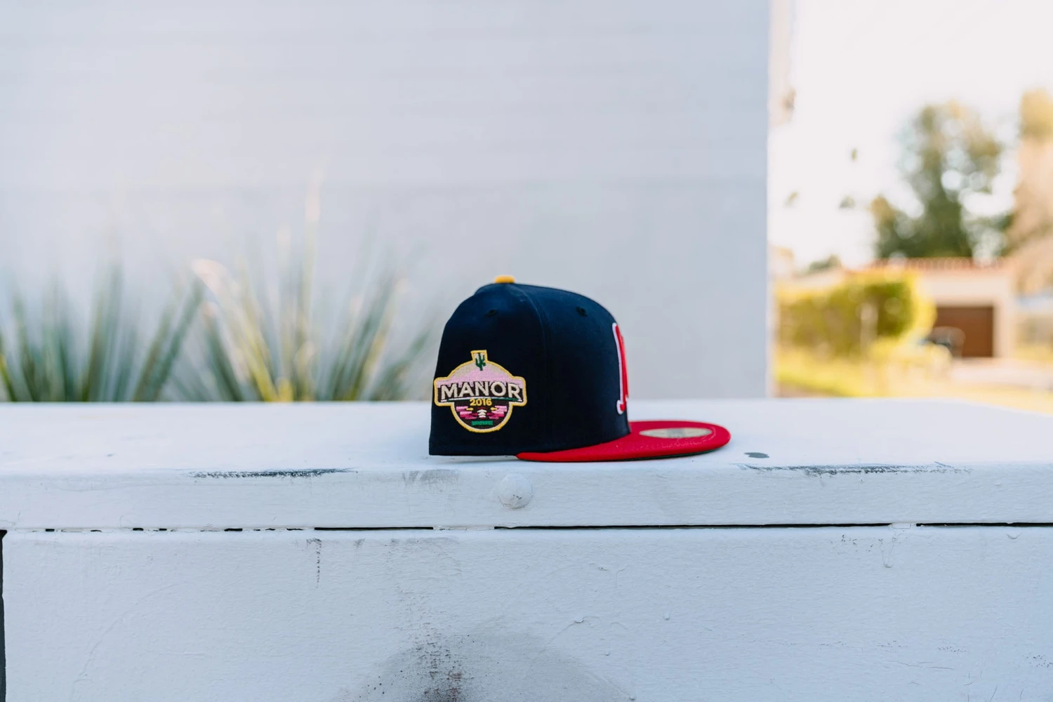 Our “M.” logo headlines the ‘Manor in the Outifled’ collection with the “Manor League” New Era 59FIFTY fitted in a navy, red, white, and yellow colorway alongside our all-new side patch, inspired by The Valley of the Sun.