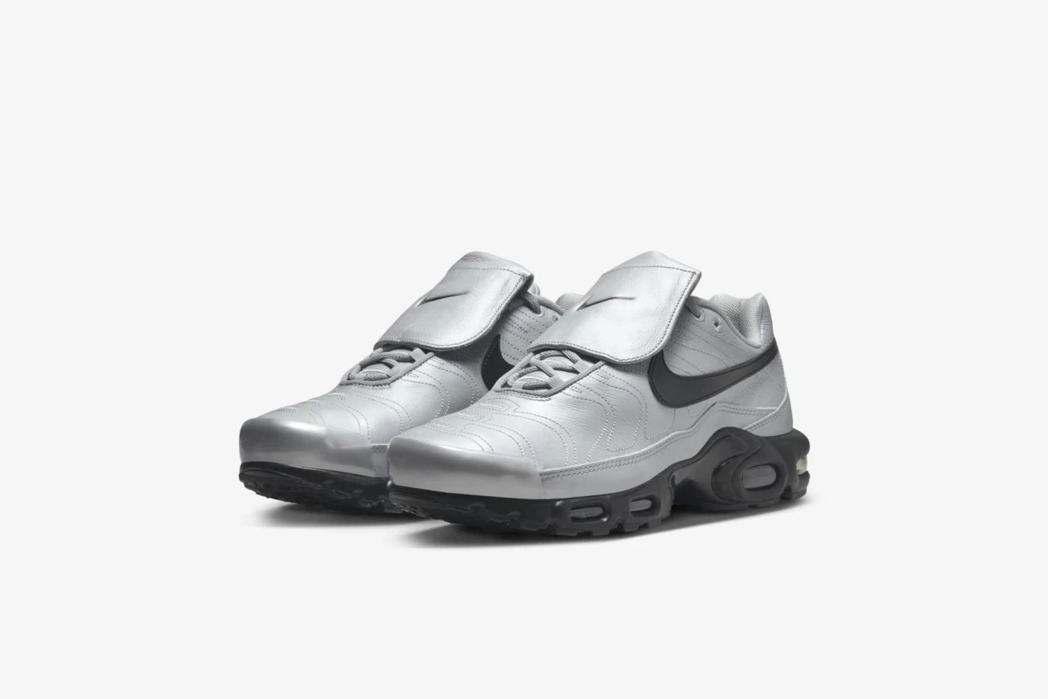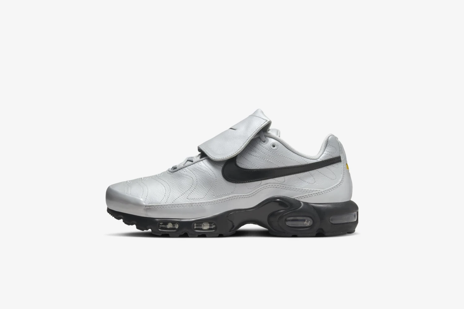 Make some waves in the Air Max Plus. Featuring a smooth Wolf Grey leather upper, it puts a new spin on defiant style with wavy stitched lines and polished plastic accents in Metallic Silver. Plus, this edition brings a Swoosh-branded, fold-over tongue for a soccer-inspired aesthetic while still maintaining premium stability and cushioning. The pitch never felt so bouncy.