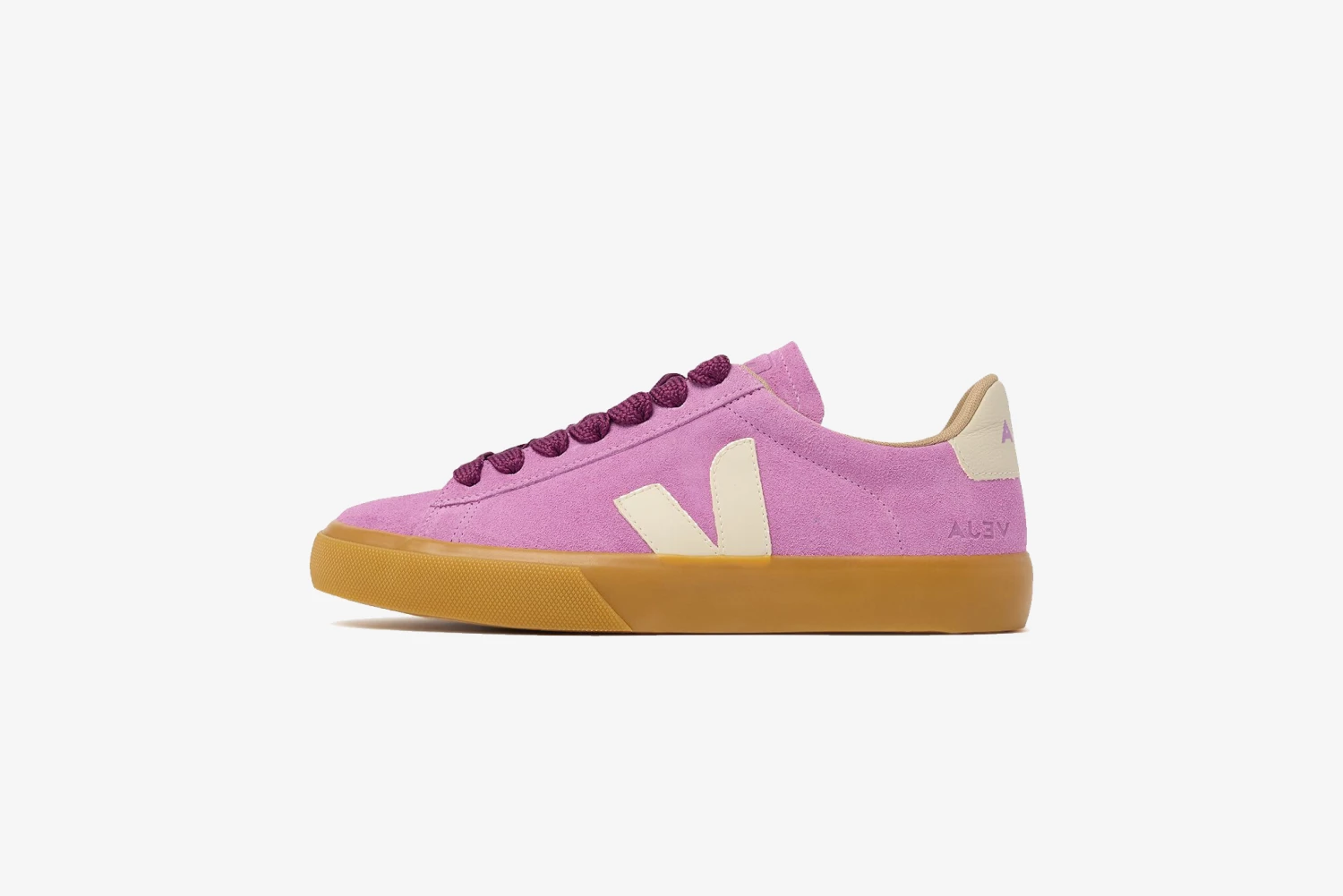 The suede is made from the underside of bovine leather previously brushed to make it softer and more flexible. It comes from farms in the south of Brazil (Rio Grande do Sul). It is tanned in Brazil, without using any hazardous or prohibited chemicals. VEJA uses conventional dyes that comply with regulations. Special attention is paid to water usage during the tanning process. The suede is also coated with water-repellent oils without PFCs (chemical compounds) to protect the sneakers from light rain.